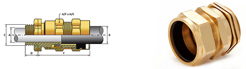 | Size | Standard Thread Size "C" | Thread Length "D" | Cable Dia. Max. "A" | Cable Diameter | Armour Wire Dia. | Protrusion Length "F" | A/F | A/C | ||